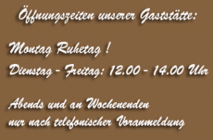 In unserer Gaststube finden Sie Raum für ca. 20 Personen. Hier können Sie in geschlossenen Gesellschaften, zu Mittag oder zu Abend Speisen á la card zu sich nehmen. Firmen, private Personen und andere Institiutionen können selbstverständlich auch unseren wöchentlich wechselnden Mittagstisch zur Selbstabholung oder unseren Lieferservice in Anspruch nehmen.